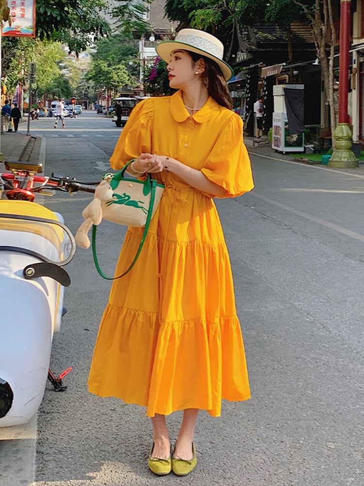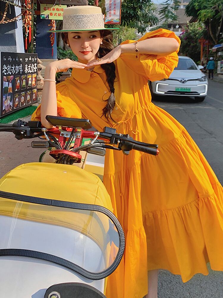 オレンジランタンスリーブフレンチドレス レディース 韓国風ルーズデザインニッチドールカラーフォレストスカートが新登場しました!この魅力的なアイテムは、様々なシーンであなたのスタイルを際立たせる特別なドレスです。
