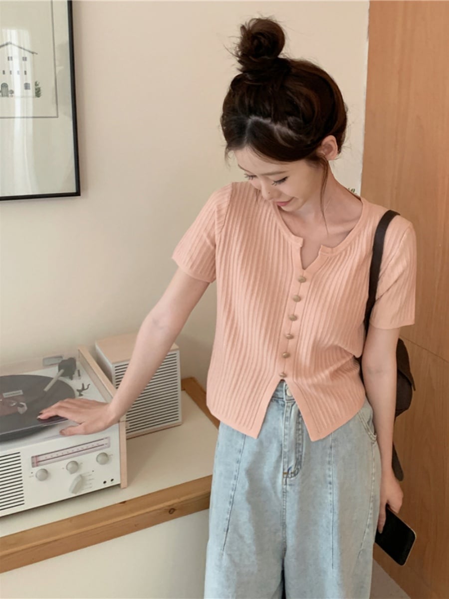 新しいニットアイスシルク半袖 T シャツを取り入れて、ファッションに新たな魅力を加えてみませんか?トレンディなボトムスやスカートとの組み合わせで、軽やかで洗練されたデイリールックを一層楽しむことができます。ぜひ、このコレクションに加えて、あなたを一層引き立てる一着にしてください!