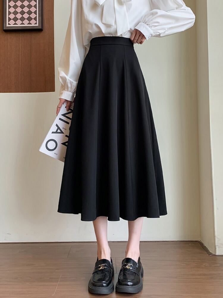 # ブラックスーツ ハイウエストスリムミモレ丈スカート、女性のための2025年新デザインエレガントスタイル!