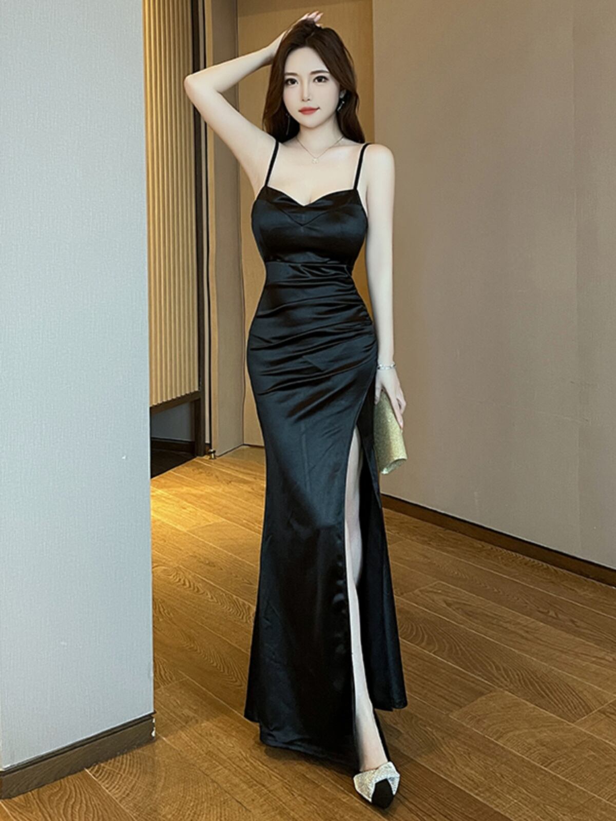 セクシーなサスペンダードレス、ロングソフトスタイル