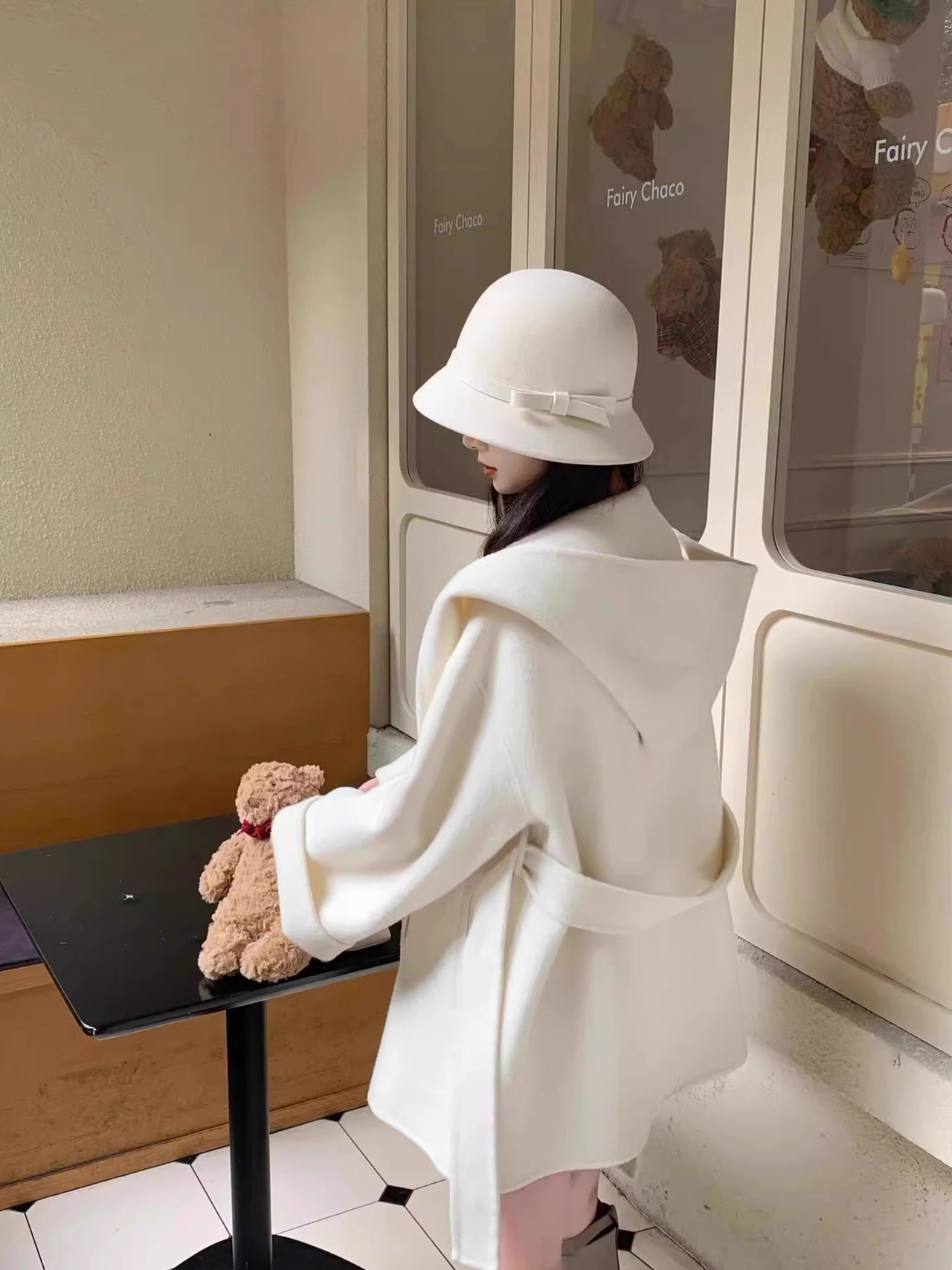 # ショートフード付きウールコート 韓国スタイル 洗練された魅力を引き立てる特別な一着!