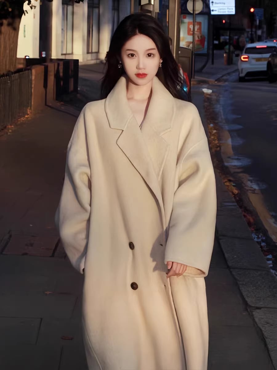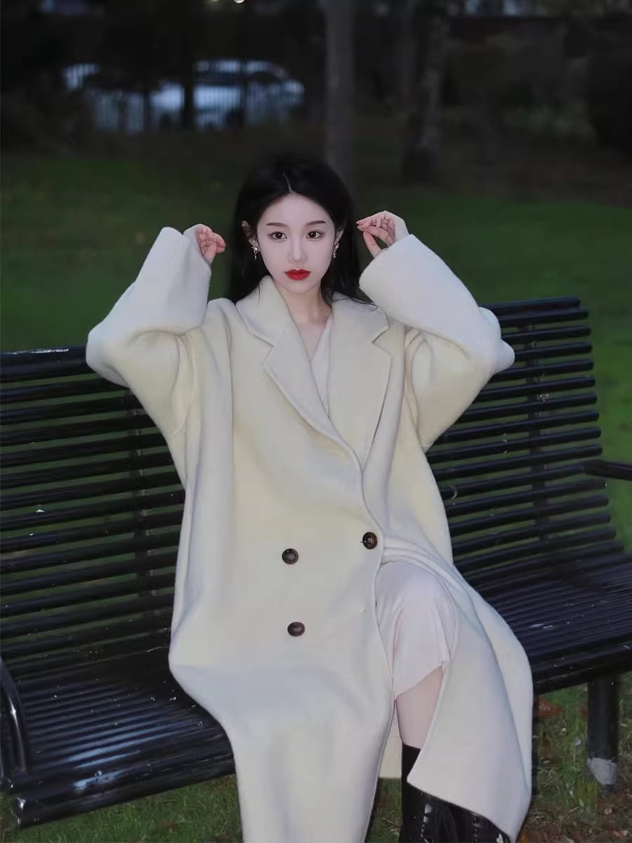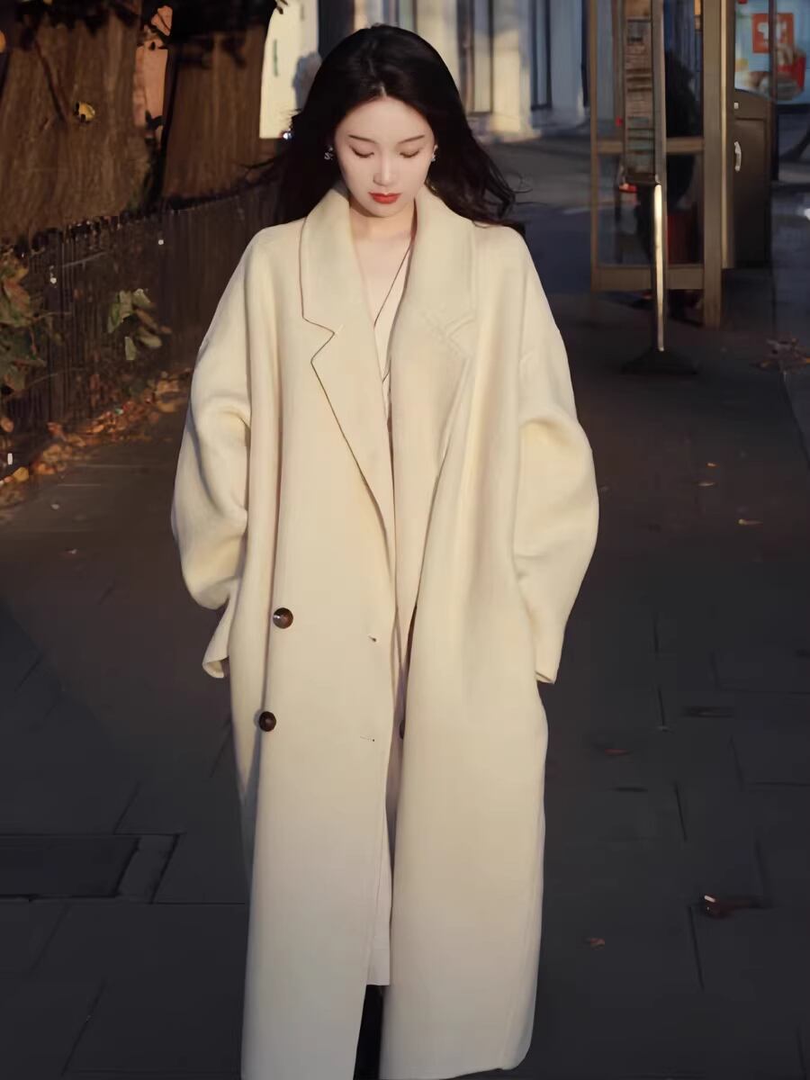 # 韓国スタイルのハイエンドダウン裏地ウールコート 洗練された魅力を引き立てる特別な一着!