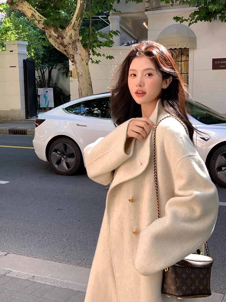 # 冬の新しい韓国スタイルのルーズミッドレングスハイエンドウールコート 洗練された魅力を引き立てる特別な一着!