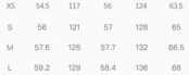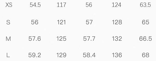 サイズ表左から 肩幅 胸囲 袖丈 裾 着丈