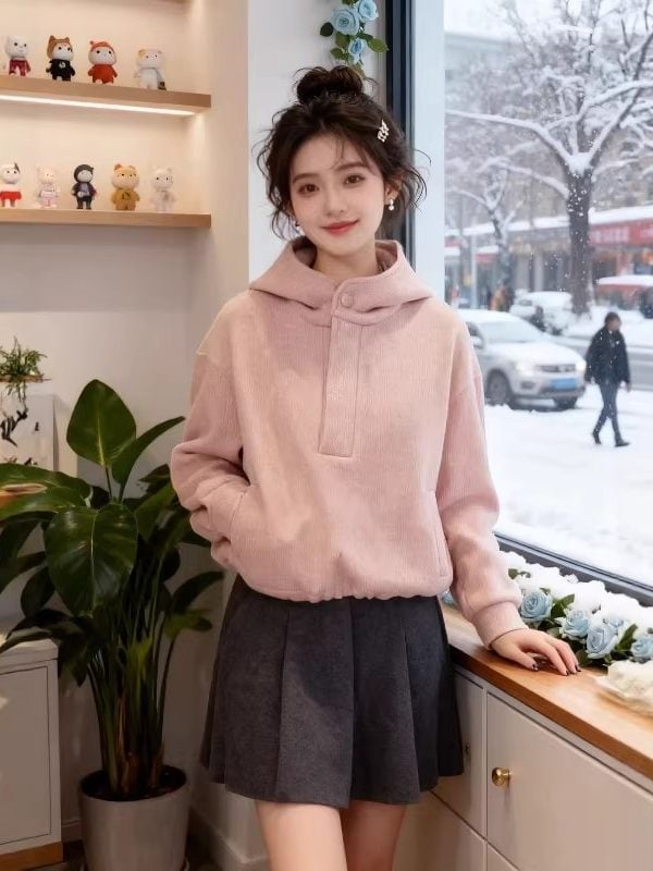 高品質なベルベット素材を使用し、驚くほどの柔らかさとあたたかさを兼ね備えています。優しい風合いのデザインは、どのコーディネートにもマッチし、気軽に着こなせるアイテムです。フード付きのデザインは、カジュアル感を演出しつつ、リラックスした雰囲気を提供します。