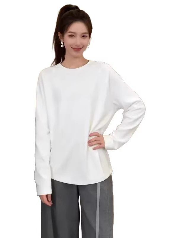 # 大きいサイズのカジュアルで多用途なミニマリストスタイルの無地長袖Tシャツ 特別な一着!