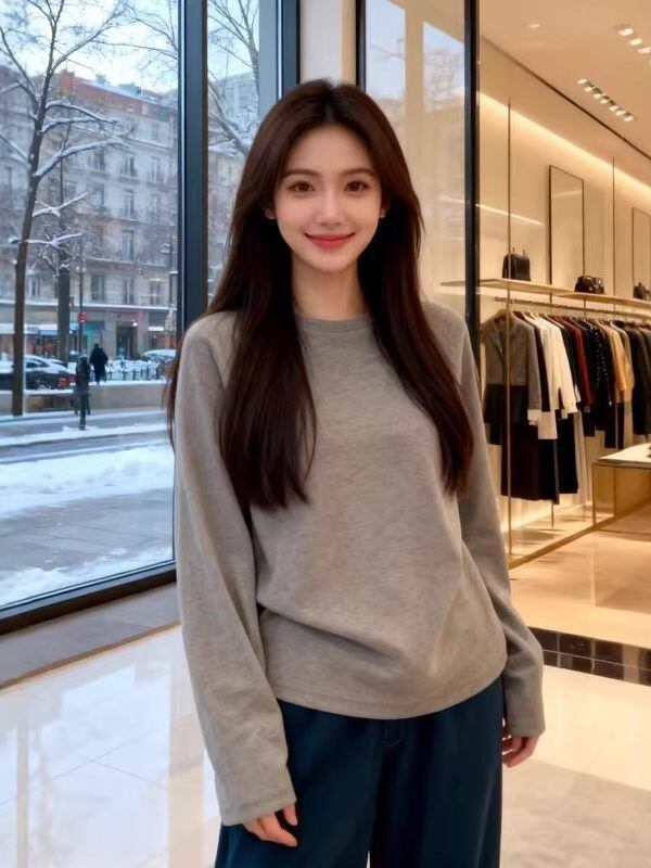# 大きいサイズのカジュアルで多用途なミニマリストスタイルの無地長袖Tシャツ 特別な一着!
