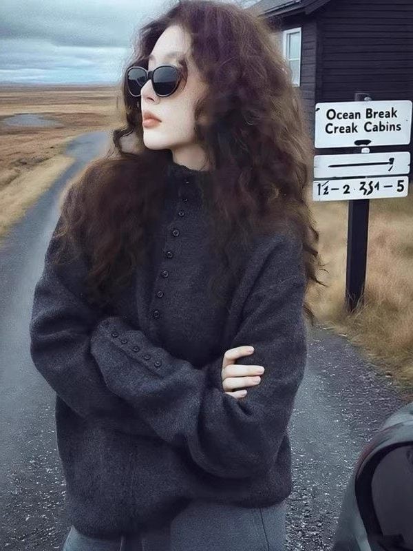 ハーフタートルネックボタン付きセーター女性のための 2026 春大きいサイズルーズプルオーバーセーターハイエンド通勤長袖トップ | signal 日本未入荷勢揃い!全品送料無料です♪