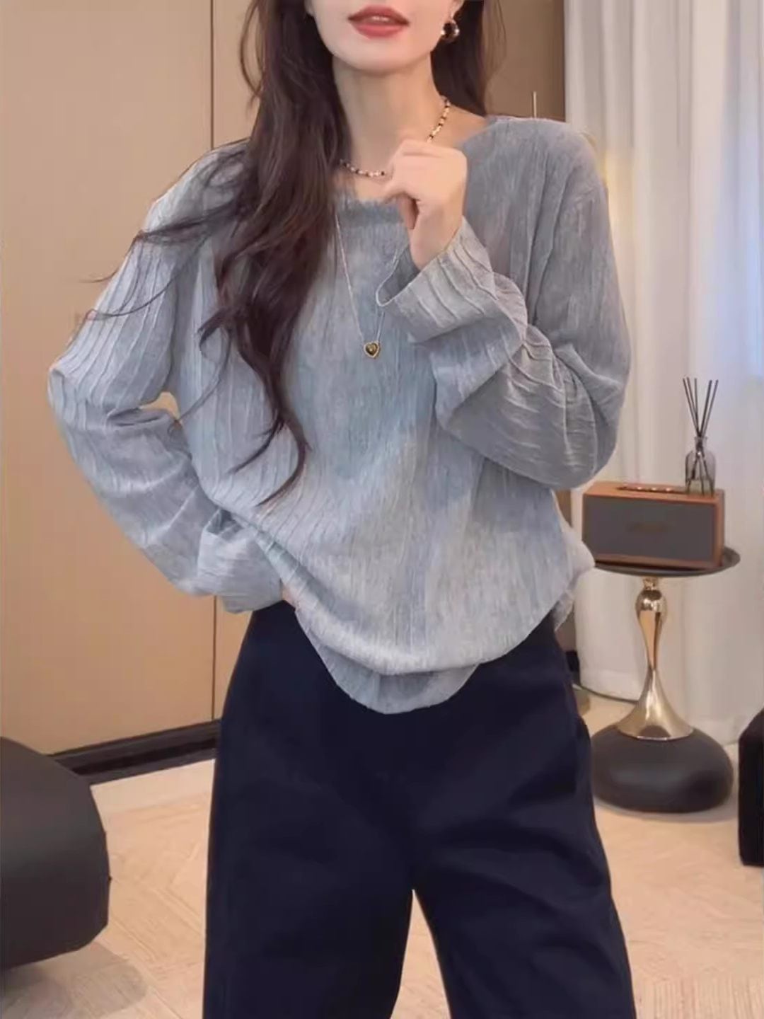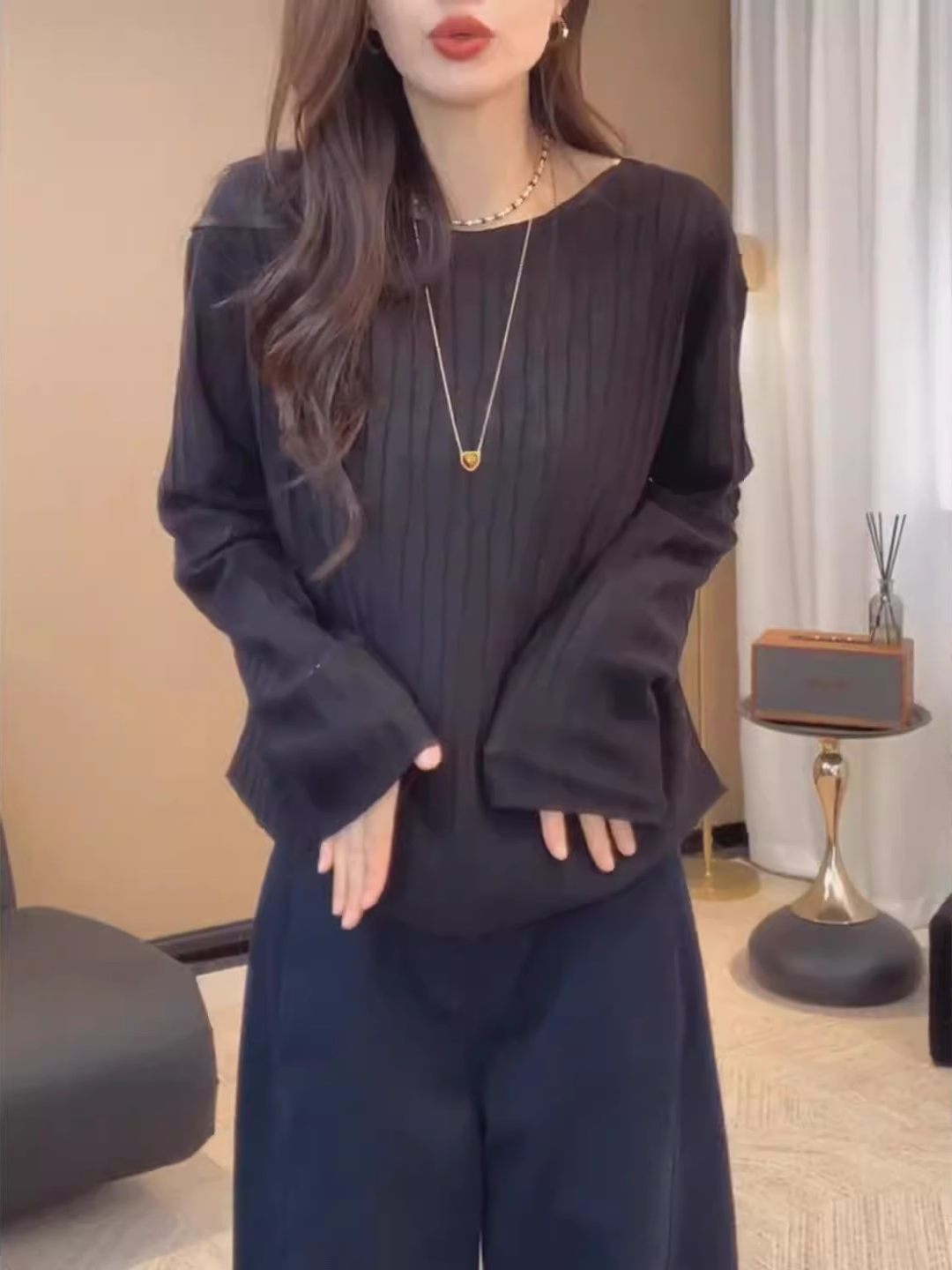 韓国風シンプルなラウンドネック長袖ニット | signal 日本未入荷勢揃い!全品送料無料です♪