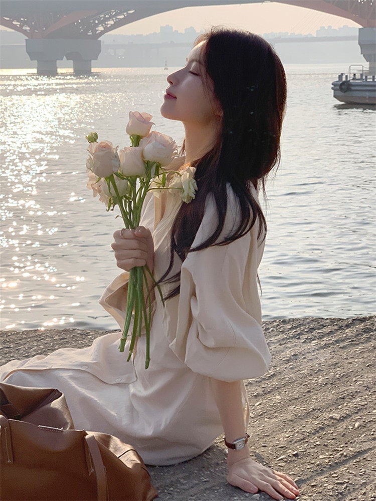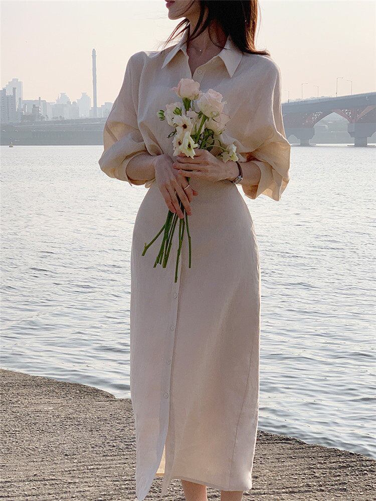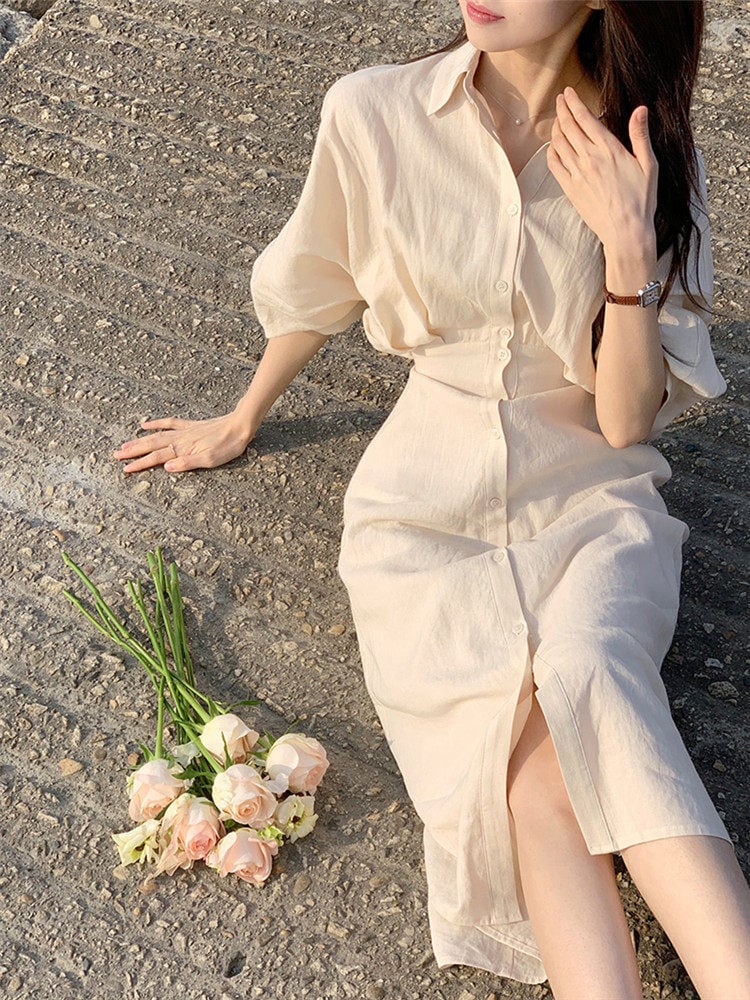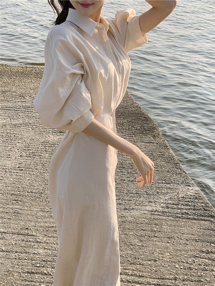 # ティーブレイクフレンチリネンドレス 女性の春夏の新しいスタイル 特別な一着!