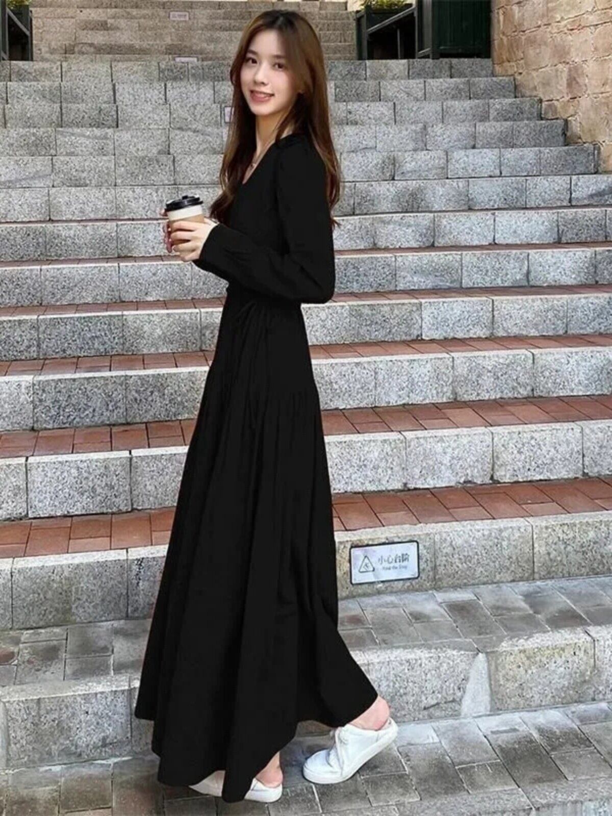 この「韓国スタイル エクストラロングドレス」を日常のスタイリングに取り入れ、特別な魅力を存分に引き出してみませんか?シューズやアクセサリーとのコーディネートを楽しむことで、あなたのファッションスタイルにさらなる深みを加えることができます。この特別な一着をぜひあなたのワードローブに加えて、季節を問わず素敵なファッションを楽しんでください!